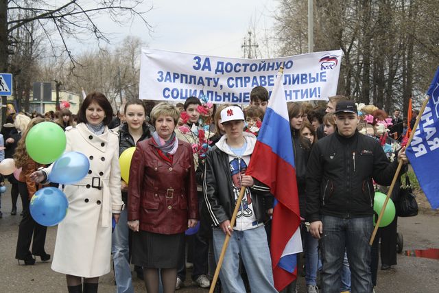 Первомайское шествие и митинг в Комсомольске прошли под флагами и лозунгами Всероссийской политической партии «Единая Россия». В праздничных мероприятиях на центральной площади города участвовали около пятисот человек, представителей трудовых коллективов, ветераны, учащаяся молодежь.  Приветствуя  демонстрантов,  глава администрации Комсомольского муниципального района Ольга Бузулуцкая отметила, что Первомай всегда отмечен особым чувством солидарности трудовых коллективов.